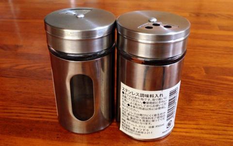 ちゃんとした「メーカー名」も入っています。それで、税込み1個105円。ステンレスなので錆び難いです。しかし、これは、「一部ステンレス、一部ガラス製」と表現すべきでしょう。内壁のスパイスと触れる部分は全部「ガラス製」です。全てがステンレスですと、塩分の強いスパイスを入れると錆びます。「ステンレスは錆び難い」と言ったのはそれを考えての言い方です。