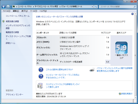 HDDだとハードディスクの項目が5.9までしか上がらないので勿体なく感じますね。
