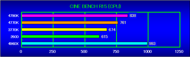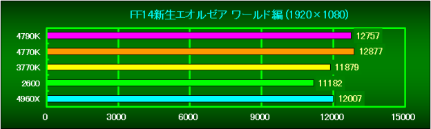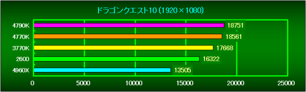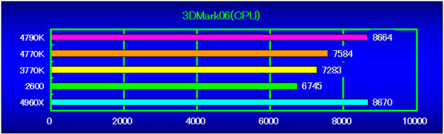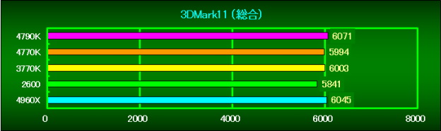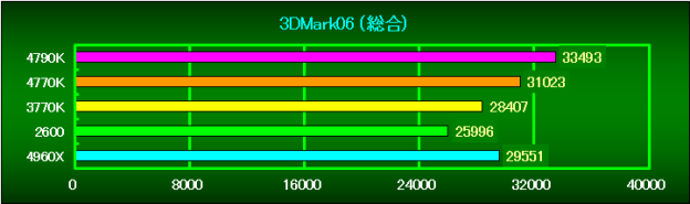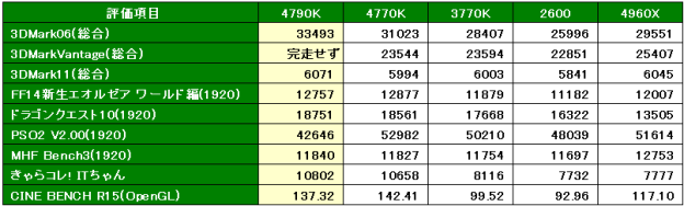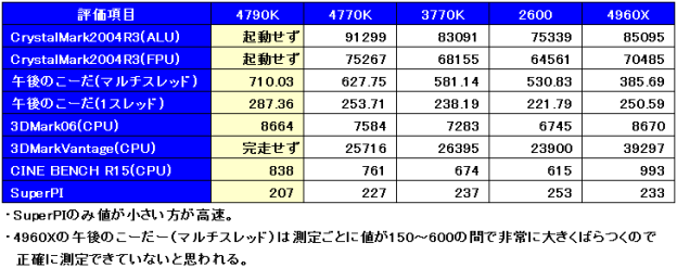 これらのベンチのスコアはCorei7-4960Xのレビューから流用しています。基本的にCPUとマザーは異なりますが、DDR3-1600 4GB×2、HDD2TB、GTX570、Win7の構成は揃えています。