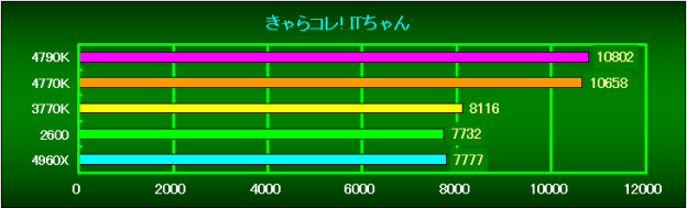 もちろん、負荷を加えると、シングルスレッドなら4.4GHzまで上がります。とは言え、体感的には4770Kと全く差がありません(^^; ベンチで比較することにしましょう。