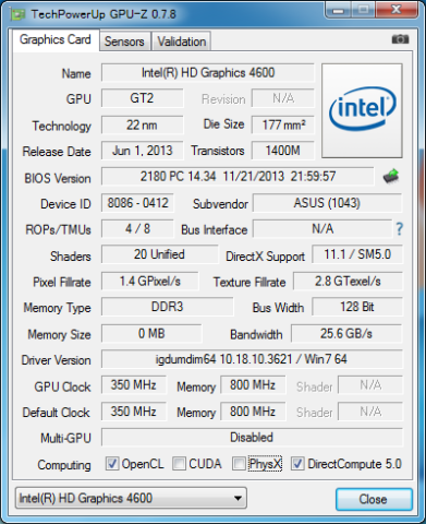 【内蔵GPU】intel HD Graphics4600(MAX 1250MHz)