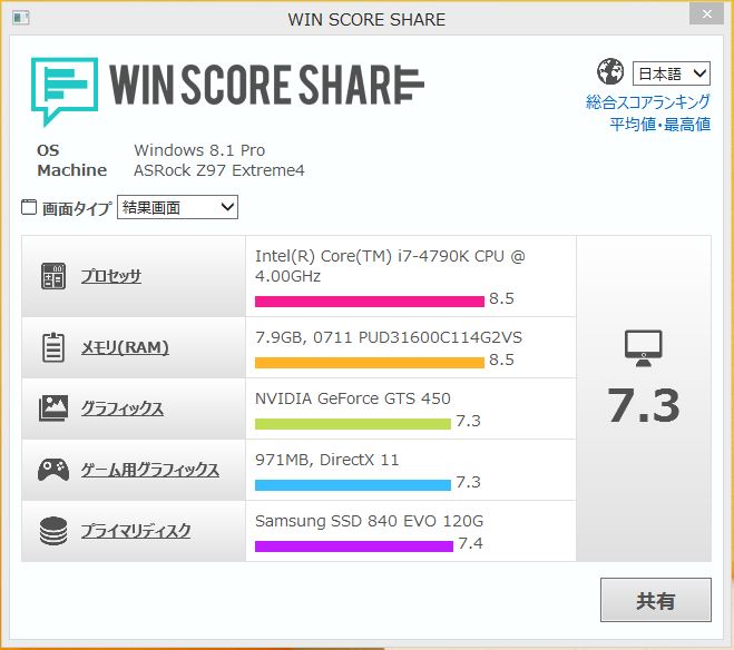 8.1にWEIが無かったのでアプリでちょっと測定。