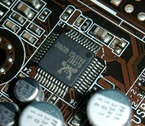 音源チップは低価格マザーで良く見かける蟹さんマークのACL887。フロント用ピンヘッダを使用することにより8ch再生に対応します。(使っている人居るのかな?)