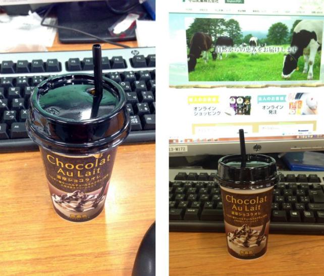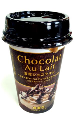 「ベルギー産チョコレート使用、北海道産生クリーム使用、ハイファットココアパウダー使用」です。はっきり言って、チョコレートは日本の方が美味しいと思うし…。余り期待はしないで飲みました。