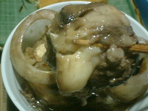 裏の身の部分はゼラチン状になってる部分とブリを炊いたときの身のような部分に分かれます。