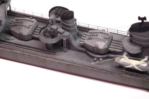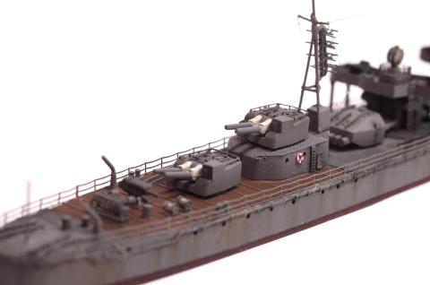 キット見た時、おぅ…コイツは!って感じでしたが、滑り止め鋼板を使ったりエッチングパーツで魚雷運搬軌条を付けたりしただけで、だいぶ良くなった気がします。