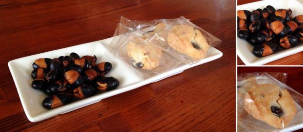 まめや「萬久」さんの「黒豆炒り豆」と黒豆おかき「しみみ」のセットです。金澤に実家のある「お友達」から戴いたそうです。