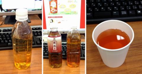 色々な説明はあっても、一番気になるのは「味」です。お昼になる前、入れて2時間ほどで「良い色」になりました。種類の違うお茶を比較しても仕方がないのですが、左がセブンの麦茶、右がルイボスティーです。