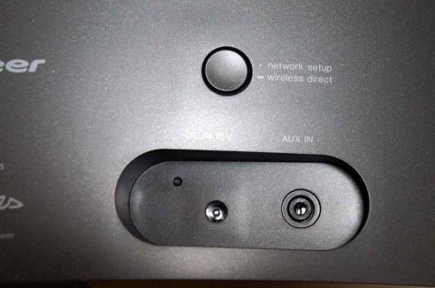 電源端子と外部入力があります。また、ホームネットワークを介さずに、ダイレクトにデバイスと無線接続するためのボタンもあります。