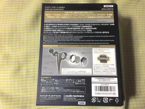 ただ、今回は最も期待していたアクセサリー類(ケーブルやイヤーピース等)の特売はあまりなく、仕方ないので比較的手の届きやすいインナーイヤーフォンの中から、そのうち買おうと思っていたこのATH-CKR10のB級品を買ってきました。AKG N20とどちらを買うか悩んだのですが…。