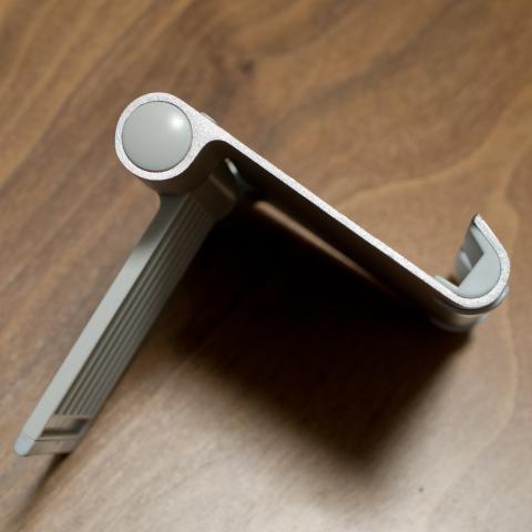タブレットを受ける部分には、樹脂が付いており傷を付けにくくなっていますが、シリコンゴム等の滑り止め材質では無いので、置き場所が傾いていると、滑り落ちそうな感じがします。