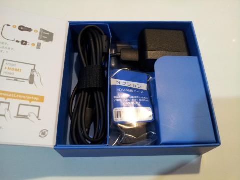 中身は本体とHDMI用の延長ケーブル、アダプターにUSBケーブルが入っておりました。