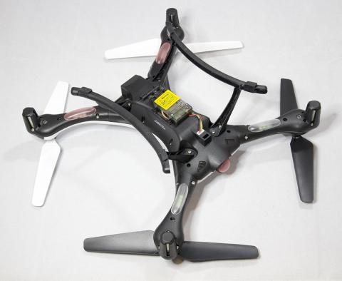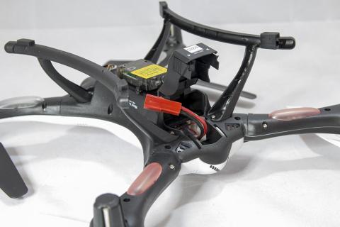 またプロペラの付いている下の方にもナビゲーションライトが付いており、フライト中ライトが、前方は赤色、後方は白色に点灯するようになっており下から見上げた状態でも前後が分かる様になっています。