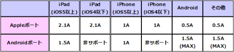 更に、このAppleポートに非Apple製品を接続した場合の出力は、0.5Aになるらしい。