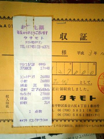 レシートのほうが正しいでしょう。でないと(91年=平成3年の購入だと)、