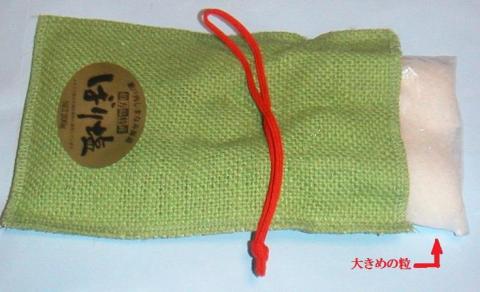 食塩だそうで、やや結晶粒は大きいけれど溶けやすくなっています。