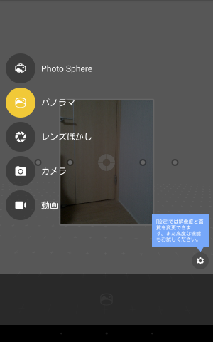 また、Photo Sphere、パノラマ、レンズぼかしには