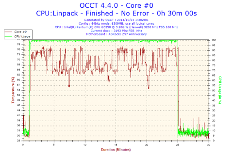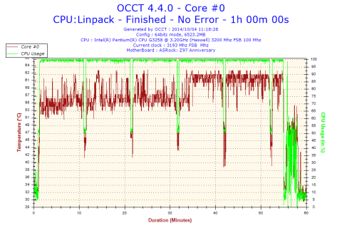 この時点でのOCCT稼働時の消費電力が86W、平均CPUの温度が60℃