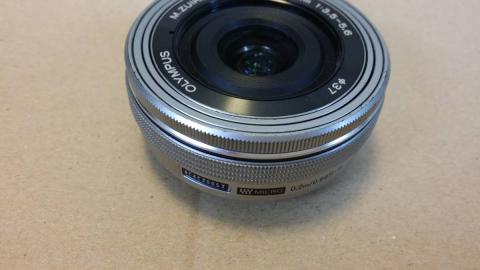 物としてはマイクロフォーサーズ用の標準ズーム域(35mm換算 28mm~84mm)のパンケーキレンズで、ものすごく薄いです。