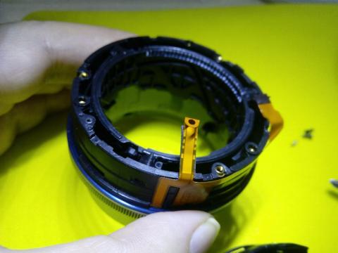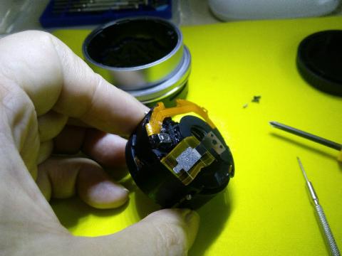 それでも3回目にはスライドする鏡筒部分以外のレンズ部分は分解でき、問題と思われるフレキも外すことができました。