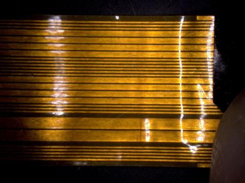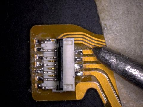 ピッチが狭いし、瞬間でハンダ付けしないといけないし、フレキが逃げるし。