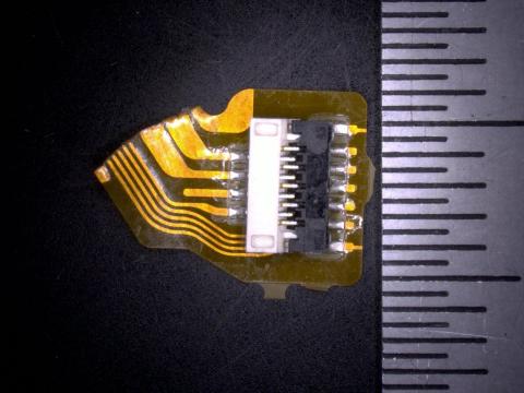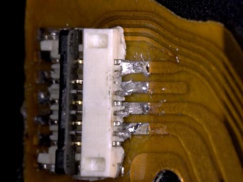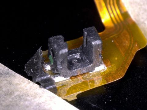 コネクタのほうのフレキは分解するときにちぎれてしまいました。交換する方のフレキでよかったです..。下の写真に写っている定規は、一目盛0.5mmです。本当に小さいコネクタ..。