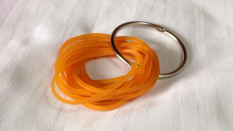 最近は、輪ゴムを綴じているの位しか見かけません。