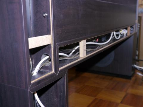 スピーカーケーブルだけでは無く、電源やLAN・アンテナケーブルまで通して
