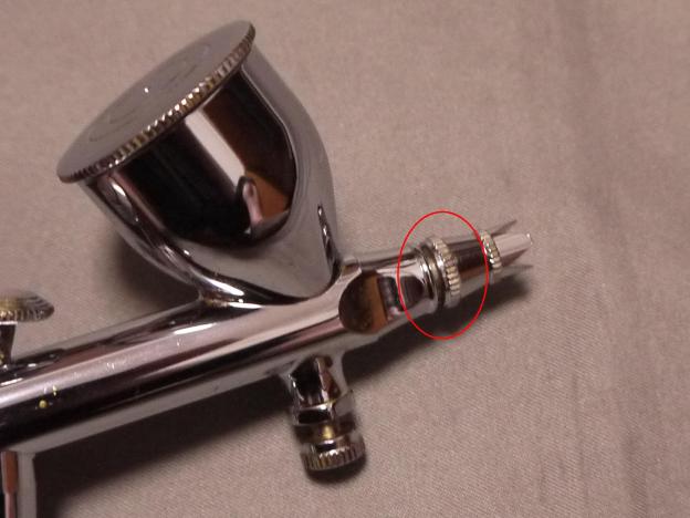 エアブラシ後部のノズルで塗料噴出量を調整できるのは一般的ですが、エアを調節出来るのは珍しいのではないでしょうか。