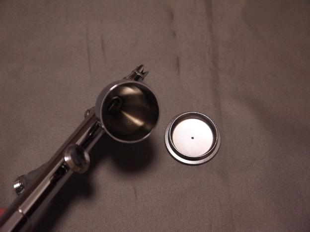 ノズル径は0.3㎜と標準的なサイズで、ボタンを押すことでエアーが出始め、手前に引くと塗料が出ます。