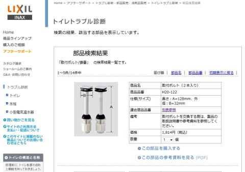 ネットで検索して取り付けボルトは通販で注文できることが判りました