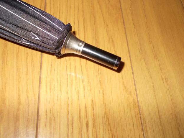 外側は日傘らしいブラックにストライプとシルバーの縁取りが