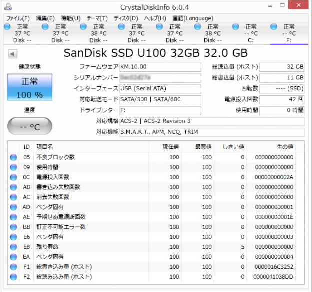 別件で、他のディスクのDisk Infomationデータを採った時、偶然このUSBメモリが刺さっていて、Crystal DiskInfo.上で表示されることが判明しました。