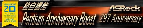 冒頭で書いたようにこのZ97 Anniversaryには、Pentium 20周年記念エディションG3258専用のOCを3段階で設定できる「Pentium Anniversary Boost」と言う独自機能を搭載しています。しかしながらOCに関してはこの機能を使ったからと言ってMBが壊れようがCPUが焼けようが全てにおいて『自己責任!』細心の注意を払って下さいね~