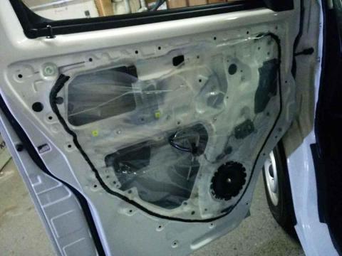 内張の裏を見ると、数カ所に穴がありましたので、ツィーターはこの穴を利用して固定。