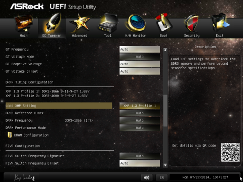 ・XMP 1 DDR3-1866 / 9-11-9-27 1.65V