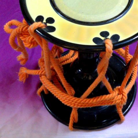 小鼓用の交換用ナイロン調べです。去年、交換していました。「調べ」とは、「調べ緒」とも言います。分かり易く言えば「紐」です。前の物がボロボロになったので交換しましたが、「ナイロン」から「ナイロン」への交換ですから、音には何の変化もありません。一般用途としては、「麻」よりも「ナイロン」の方が丈夫で汚れにも強いので…。