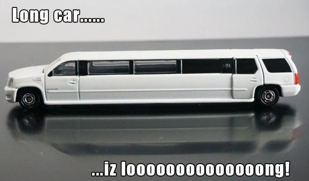 トミカのキャデラックエスカレード。エスカレードはキャデラックの最上位に位置するSUVタイプの高級車なのだが…何故かトミカではリムジン化されロングトミカとして登場。もうご覧の通りの超ロング。