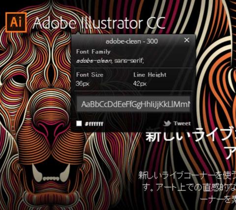 代わって、Webフォントのクラウドサービスを提供しているAdobeのサイトの文字を調べてみると、「Adobe Clean」と表示されています。Adobe Cleanは2009年からAdobeのコーポレートフォントとして新しく制定されたフォントで、Adobeしか使えない専用フォントです。