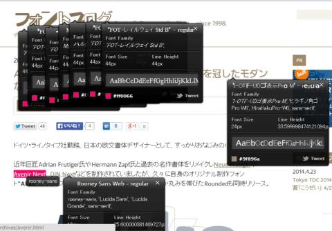 でも、大掛かりなサイトでCSSの解析が難しい場合や、ちょっとした興味で調べたい時など、書体を調べるのが大変な場合がありますが、このツールを使うことによって、簡単に使われている書体を調べることが可能となります。
