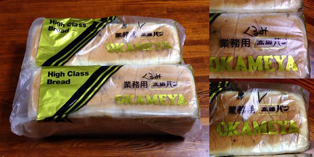 業務用専門に卸している「おかめや」さんの食パンです。ホテルや喫茶店等の業務用が中心で店頭の販売はしていません。工場でのみ一般用も扱っています。家は以前喫茶店をやっていた関係で昔から付き合いがあるらしいです。
