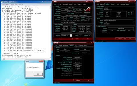 メモリーのオーバークロック耐性にも定評のある本マザーですので、メモリーオーバークロックもテストしてみました。まだ、アンコアを詰めたり、2nd,3rdを詰めるほどには至っていませんが、まずは、クロックと1stの設定でパイを走らせてみました。