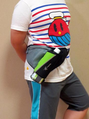 そして本品は使用するのにペットボトルは腰の後ろに持っていくのが普通っぽいですが、ウォーキング程度なら右側に位置するように持って来ればボトルもポケットにも手が届き便利そうです。