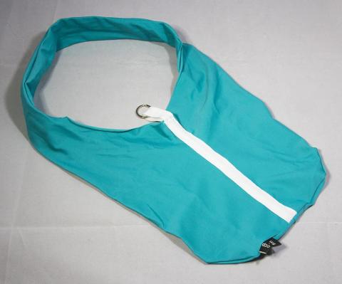 たすき掛けにすることにより開いた口の横方向にテンションがかかり口を閉じる構造になっています。