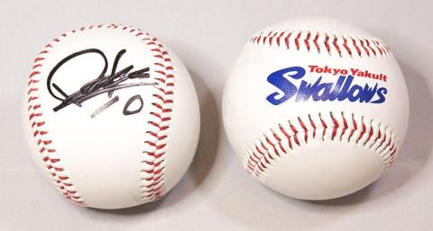 そして購入したサインボールはヤクルトのロゴが入った硬球なのですが、貰ったモノは一回り小さい感じで柔らかいボールでした。