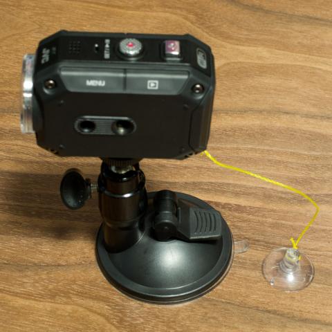 ちなみに、右の方にある黄色の糸と吸盤は、落下防止用命綱として付けてみました。