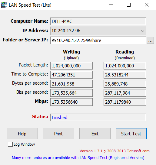 下記のスピードテストでもわかるようにGigabitに接続すれば100Mbpsを超える速度が出ます。