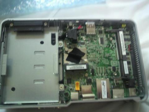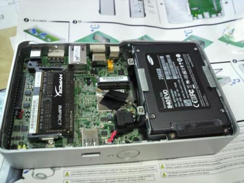 左側に2.5インチドライブを搭載する事が可能です。真ん中には実は無線LANのカードが刺さるのですが、今回は付属していませんでしたので取り付けては居ません。右側にメモリスロットが一つです。