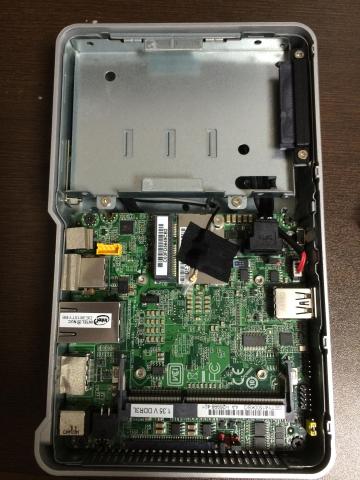 そもそもこの機種のコンセプトが業務用のシンクライアントなので、デジタルサイネージやKIOSK端末で利用をすることが想定されて作られています。CPUの性能をぎりぎりまで落として、消費電力をさげ5Wという低電力での動作を可能にしているだけでなく、追加ドライブが2.5インチのものを利用できるためファンレスのNASなどの構築も可能となっています。