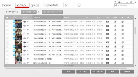 ここでは録画した番組の再生の他に、指定した録画番組をPCに移動したり DVD/BDに書き込みなども行なえます。